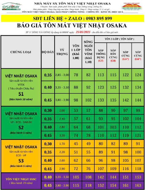 Bảng báo giá cung cấp tôn 3 lớp Osakaton việt nhật chính hãng tại Hà Nội uy tín, giá hợp lý hãy gọi ngay cho chúng tôi hôm nay nhé. 0983895899.